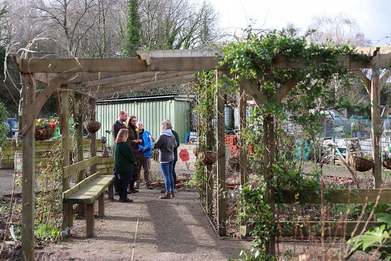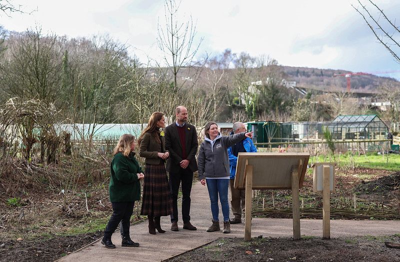 Volunteers and Staff at Pontypridd Town Council’s Meadow Street Community Garden were pleased to welcome some special visitors to the site ahead of St David’s day. The Prince and Princess of Wales came to Pontypridd on a visit which also saw them making Welsh cakes in the market and meeting those affected by December’s flooding.