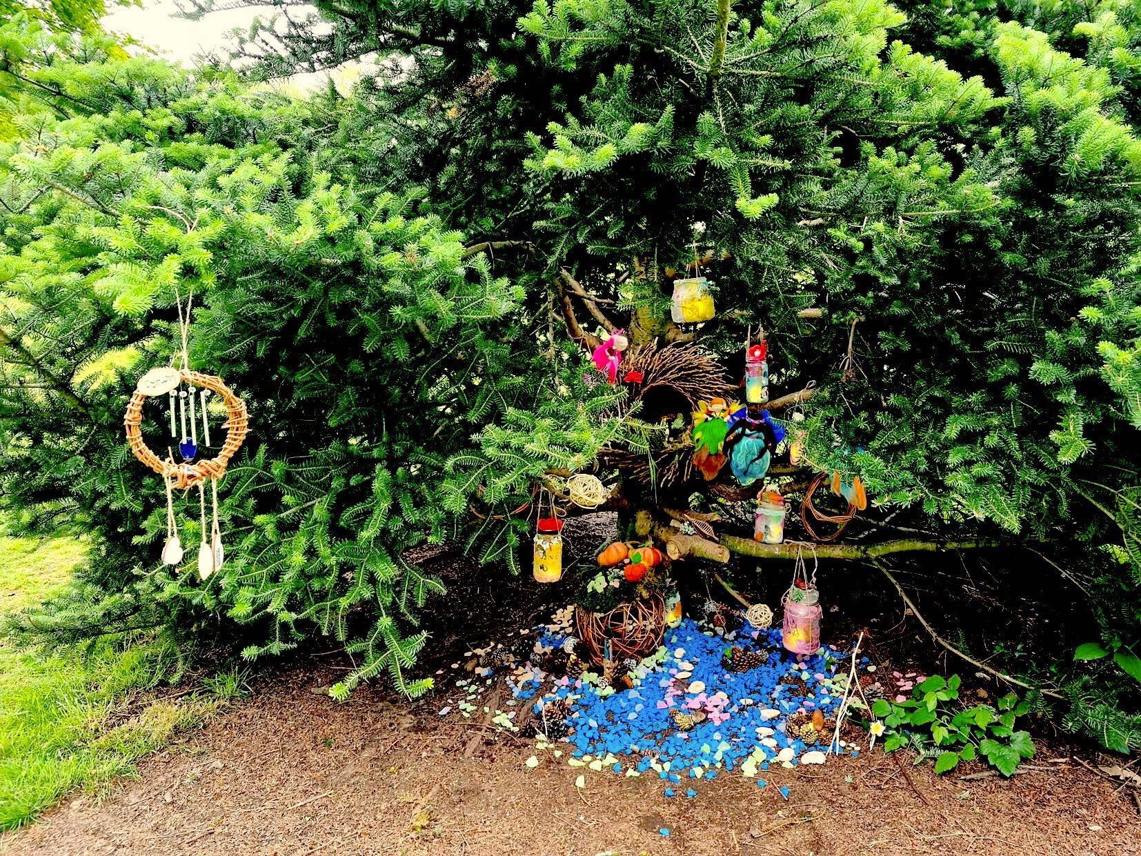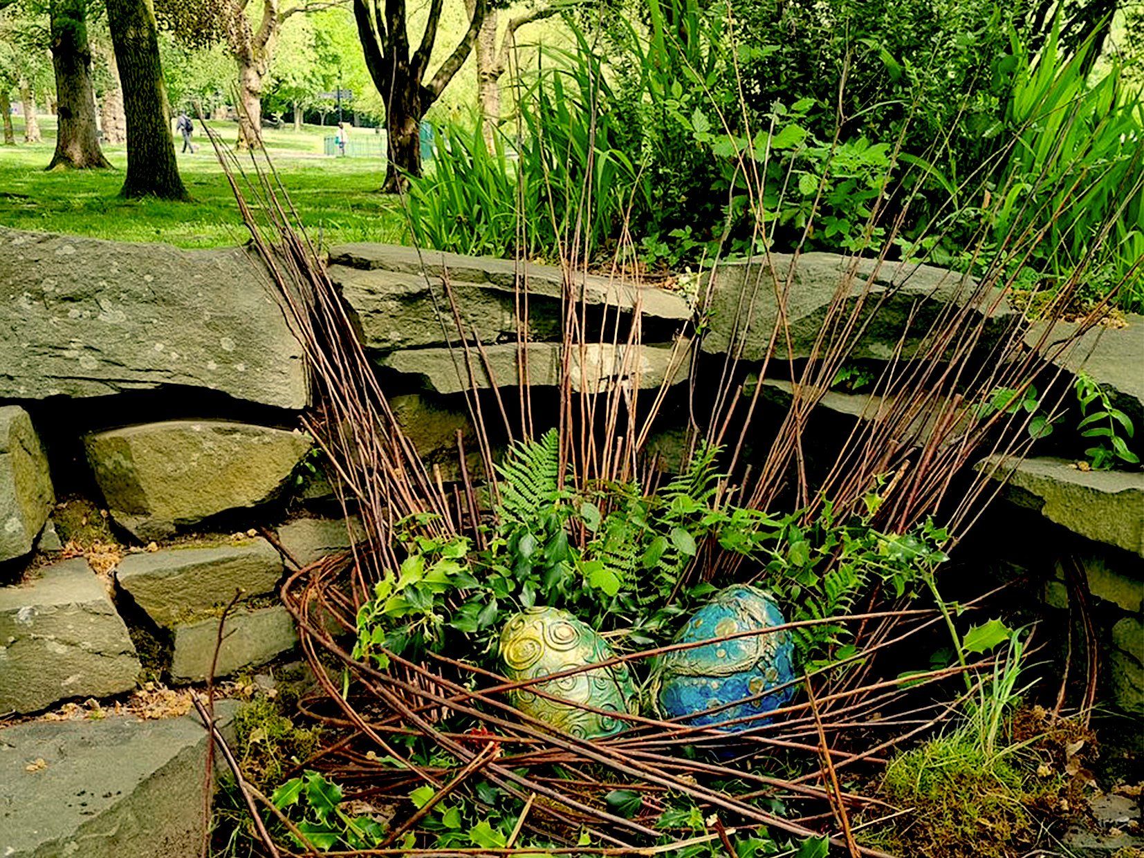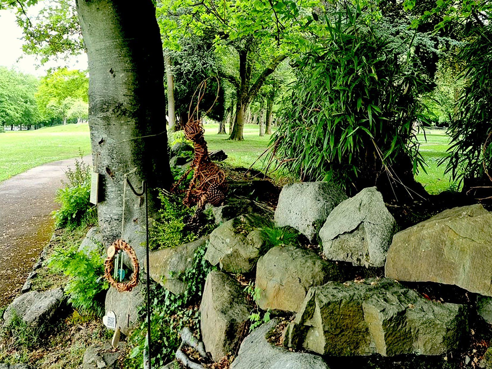 Inspired by Welsh myths, legends and stories told to me by local people, I have created a mini sculpture trail in Ynysangharad Park. There are five installations in total to find, and each is accompanied by QR codes that link to audio-description (and text transcripts) of the sculptures and their story.