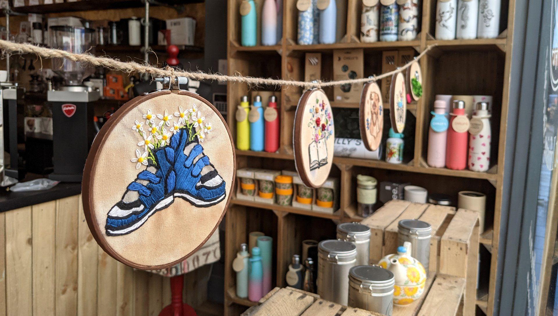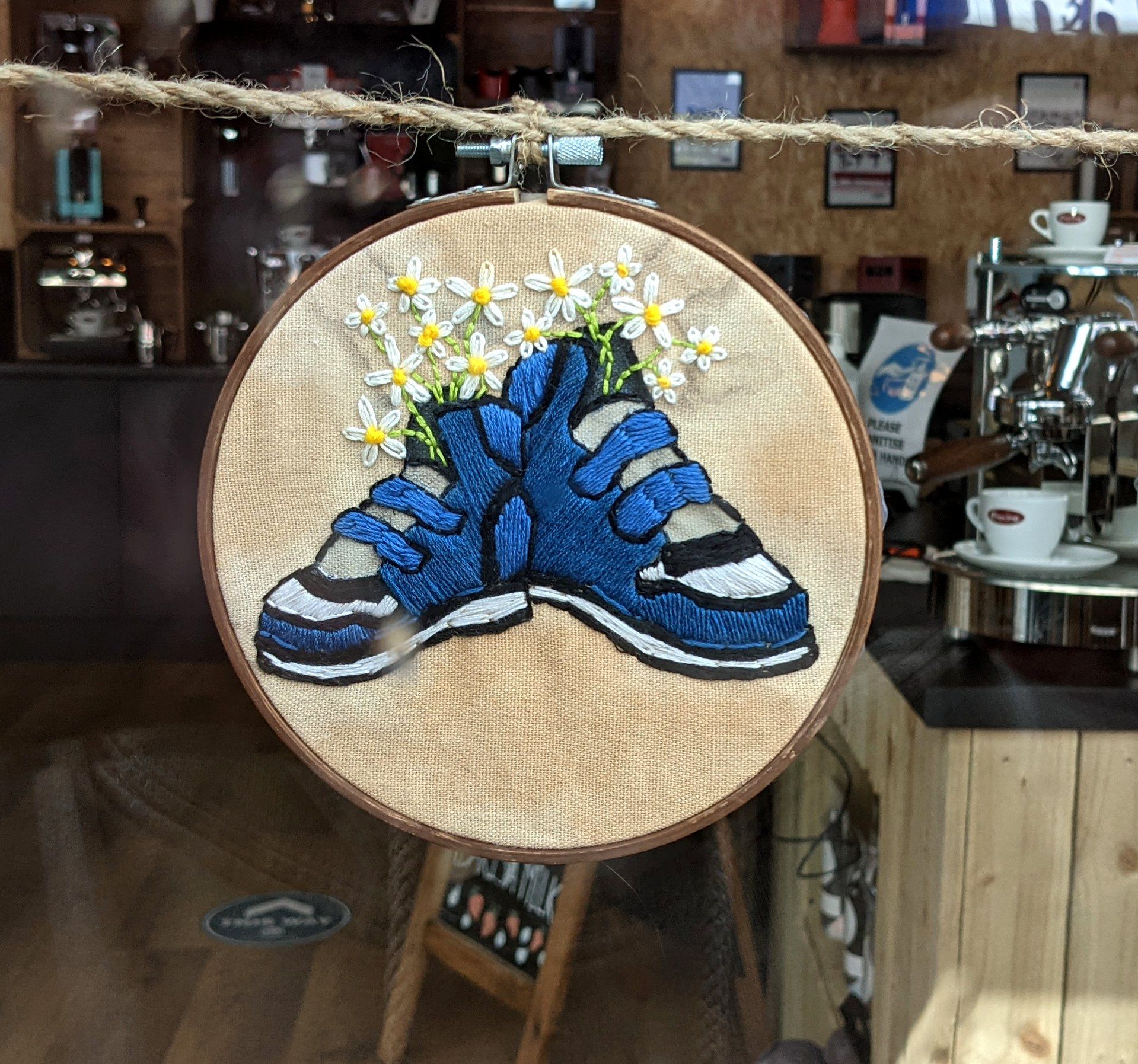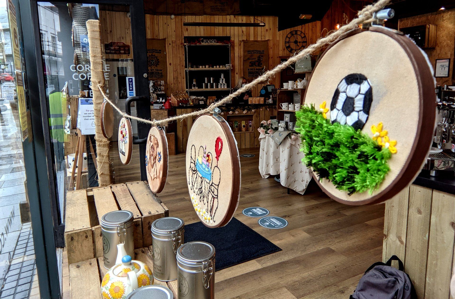 A community doesn’t have to be based on a geographical location. Community can be a feeling, a feeling of togetherness, inclusion and support. Through partnering with Cortile Coffee, it has been possible to explore what community represents for nine different people in South Wales. They were each asked to recall a time they experienced the true meaning of ‘community’ and their responses are illustrated here through the use of embroidery on fabric stained with a selection of teas and coffees. Each piece tells a story and demonstrates that, although the circumstances differ, they possess the same feeling of belonging and unity. The accompanying soundscape supports the visual art by allowing the listener to embark on an immersive journey through the participants’ experiences. A pain text transcript is also provided. I hope that this piece will perhaps stimulate discussion about what community means to others. So what’s your story?