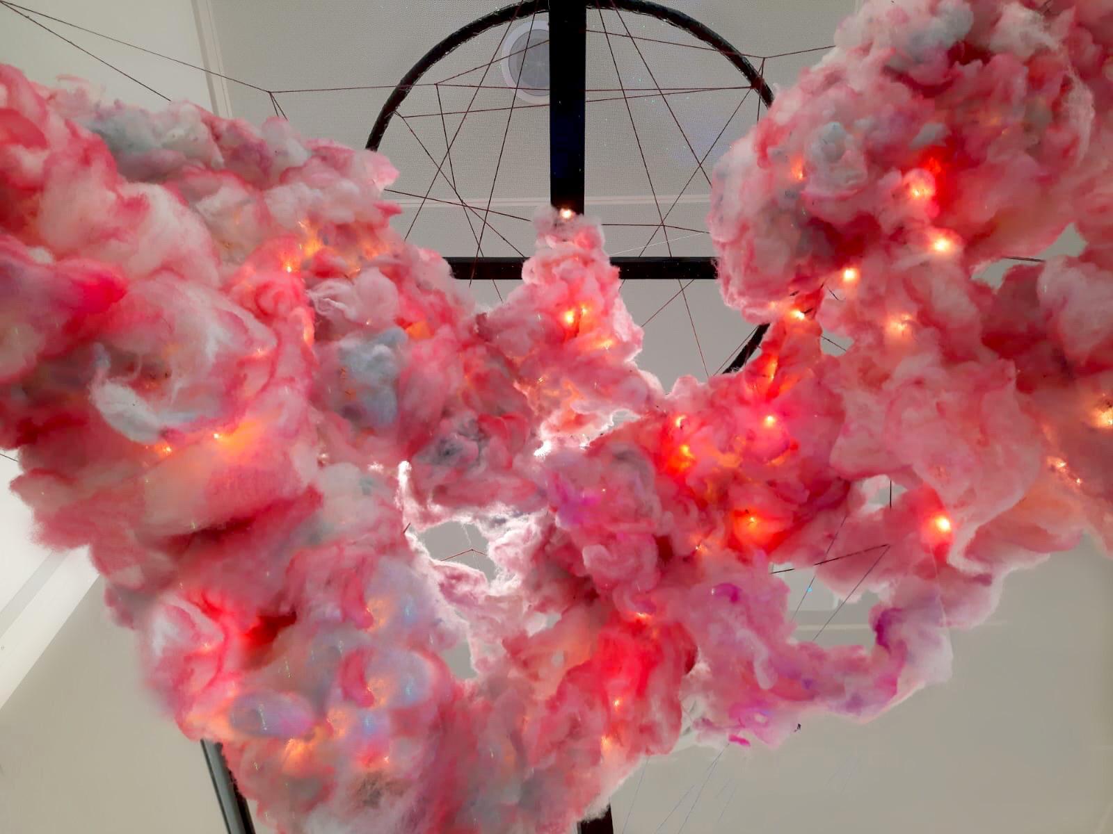 Infinity pool is an abstract, participatory sculpture, that evokes the imagination, inviting the audience to travel to deep space. Here, at 5,200 light years from earth, they will arrive at the glorious Rosette Nebula, where they can marvel at the birth of creation. The nebula was beautifully depicted in a description and photo provided by Allan Trow of Dark Sky Wales, who has made the viewing of these beautiful deep space objects accessible in the local area..